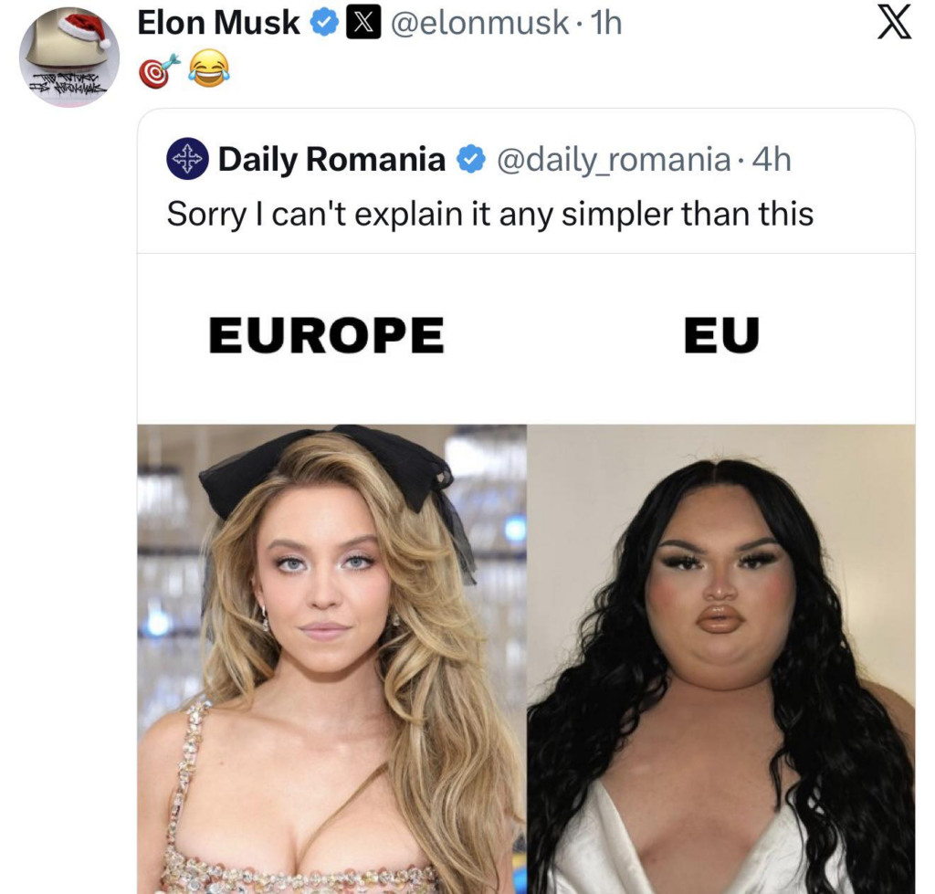 One of the most prominent instances involved Musk reposting a meme that compared “Europe” and “EU” (European Union) by showing two people, with the “Europe” image featuring a glamorous woman and the “EU” image showcasing a person with exaggerated features. The meme seemed to poke fun at cultural stereotypes, but what caught the eye of many was that Musk’s choice of humor reflected a specific online tone that is often playful yet controversial. Following Musk’s post, Billie Eilish shared a similar image, mocking Musk even further. Her post compared an athletic man from “Europe” with Musk, who was seen climbing a yacht ladder in a much more relaxed state. Eilish’s caption followed the same style, further turning Musk into the punchline.