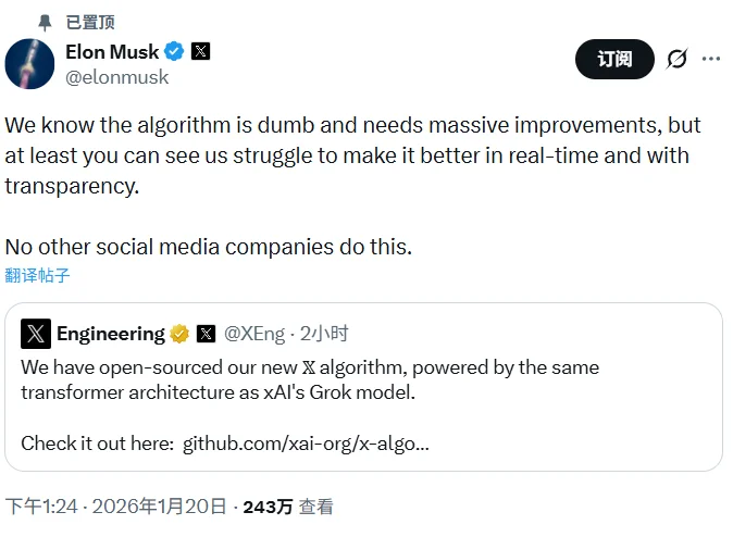 On Tuesday afternoon, Beijing time, X officially published its platform algorithm on GitHub, making it accessible to developers and the public. About ten days earlier, Musk had promised that the company would open-source the recommendation system—including the algorithms that decide which posts and advertisements are shown to users—within a week. Future releases will document changes and improvements made every four weeks.