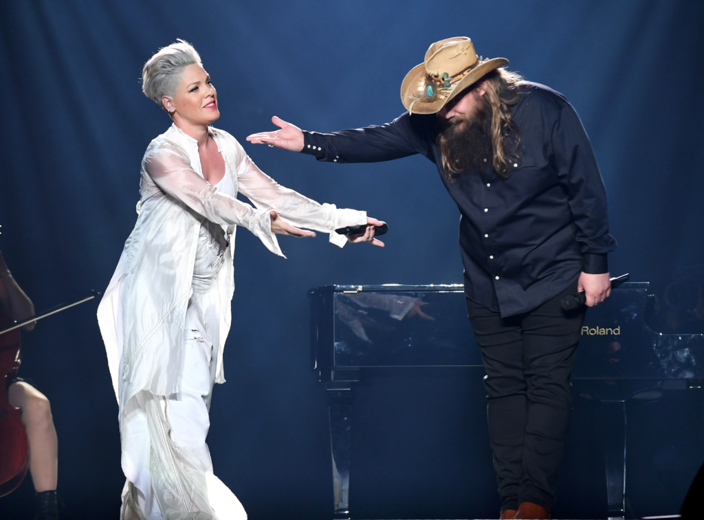 On November 13, 2019, at the 53rd Annual CMA Awards in Nashville’s iconic Bridgestone Arena, P!nk, a global pop-rock star known for her gravity-defying performances, revealed a side of herself that few expected. As the night’s spotlight focused on her, P!nk shared an unexpected admission: she was “scared to death” about performing. The reason for her anxiety was none other than Chris Stapleton, the towering figure of country music whose voice has been called the embodiment of raw, Appalachian soul.
