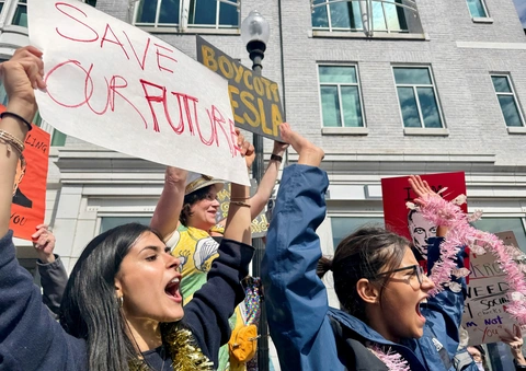 Some Tesla Takedown chapters are now expanding their focus beyond dealerships, pushing local governments to divest pension funds from Tesla stock. Early signs suggest momentum: in March, 23 New York State Assembly members urged the state comptroller to divest from Tesla, and Ontario recently canceled a Starlink contract amid rising anti-Trump sentiment.