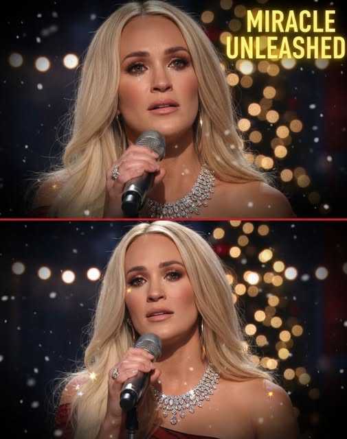 On a cold December night, beneath the Grand Ole Opry’s twinkling lights, Carrie Underwood stepped into the sacred circle and delivered a performance that felt less like entertainment and more like a shared miracle. The historic wooden stage — worn smooth by generations of legends — seemed to glow brighter as her voice rose, cutting through the winter air like a promise that warmth still exists, even in the coldest seasons.