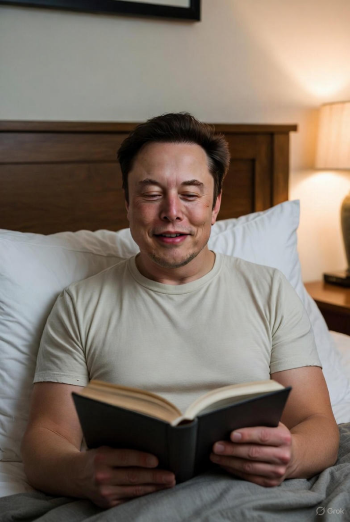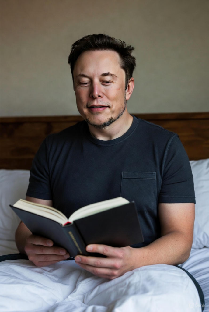 Rather than hospital lights and monitoring equipment, Musk is now seen resting in bed at home, reading a book calmly and appearing genuinely at ease. There is no sense of urgency, no visible strain — just a moment of normalcy that many had begun to wonder if would arrive anytime soon.