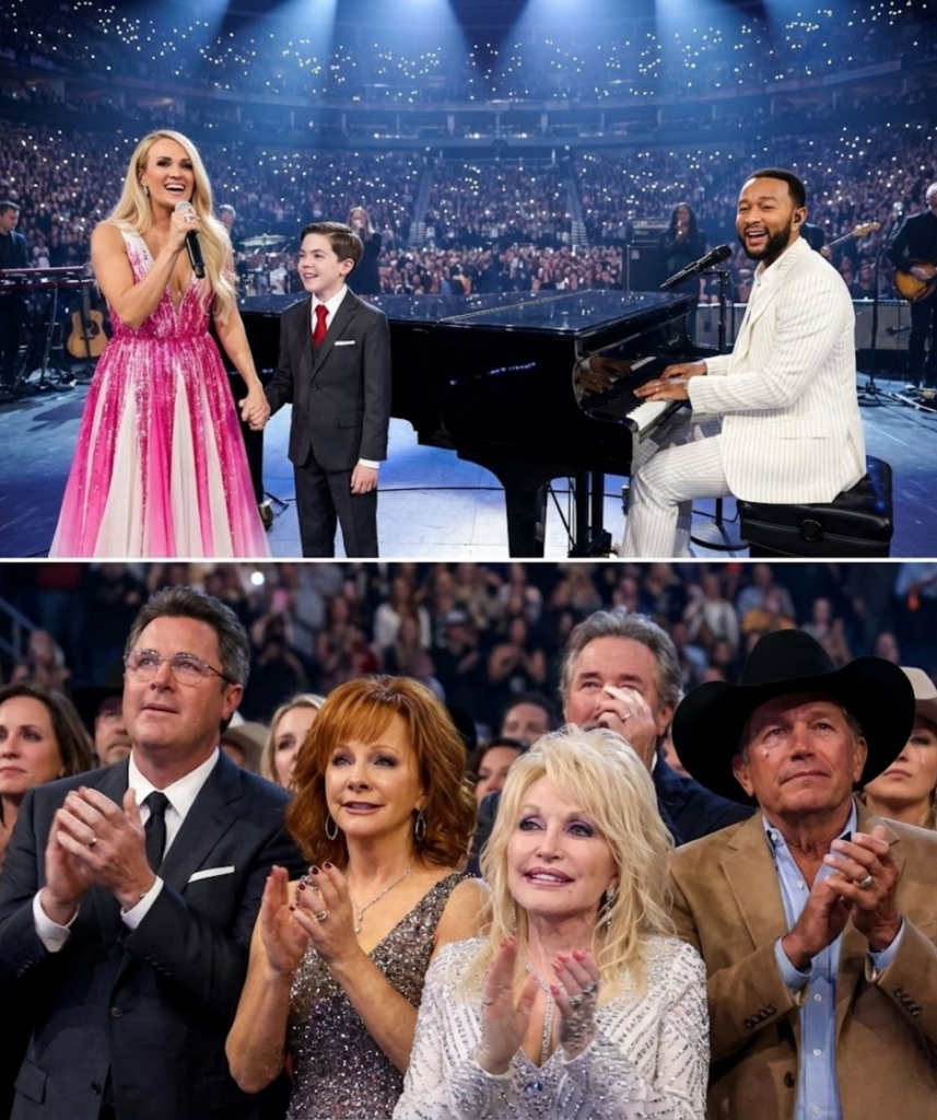Standing beneath the soft glow of stage lights, Carrie Underwood did not rush into song. She paused. With her son by her side and familiar faces from the country music world surrounding her, she spoke quietly about what she hoped the coming year would bring: overflowing joy, love that lasts, laughter shared at home, and music that heals rather than divides. There was no spectacle in her words — only truth.