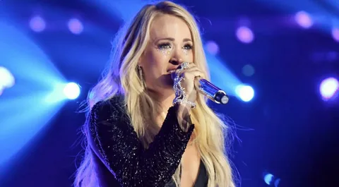 In the midst of the song’s climax, Carrie suddenly froze. The smile on her face vanished. Her hand holding the microphone trembled slightly, and then – to the stunned gaze of the entire arena – she stumbled, collapsed, and fell right there on stage.