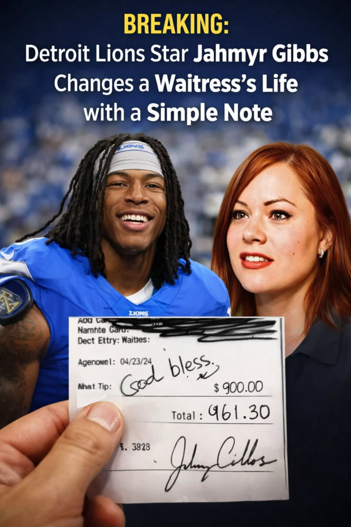 December 28, 2025 — Detroit, MI — In a heartwarming story circulating on social media today, Detroit Lions running back Jahmyr Gibbs reportedly brightened the life of a young waitress named Lily, leaving her in tears after an unexpected note on her receipt — a gesture that has since captured the attention of fans nationwide.