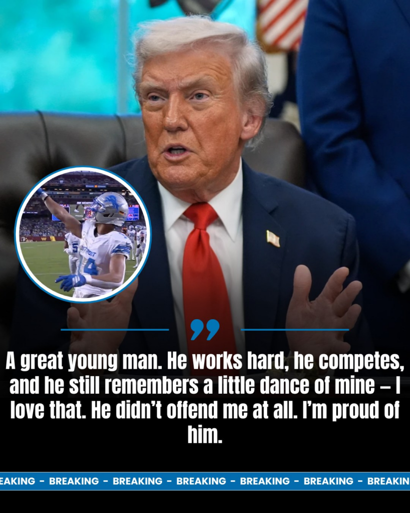 Washington, D.C. — After Amon-Ra St. Brown went viral for performing the “Trump Dance” during the Detroit Lions’ 44–22 win over the Washington Commanders, former President Donald Trump has officially broken his silence. Surprisingly, his response was not anger — butpride and amusement.