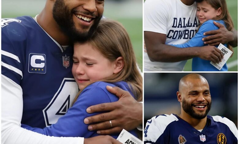 Dak Prescott silences AT&T Stadium, then erupts in excitement: A little girl who spent three years collecting cans and cookies, saving every penny to buy a Cowboys ticket, still couldn’t afford it – Legendary QB hears the story and does the impossible, climbing over the VIP seats, a shocking act that makes 100,000 fans cry, the biggest heartwarming moment in NFL history, what will Dak do next to melt America’s hearts?!
