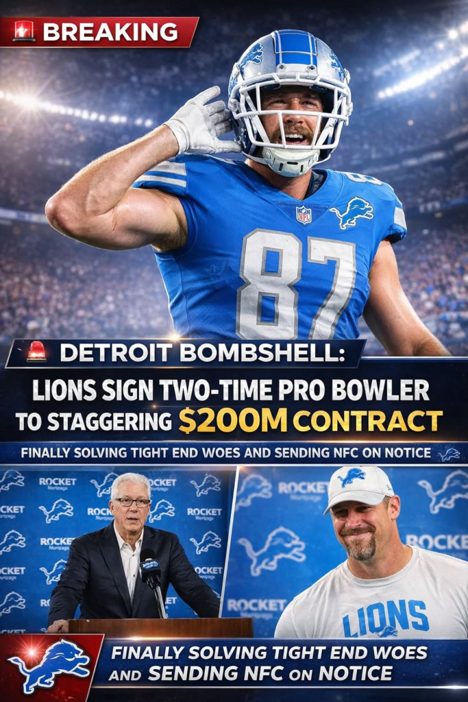 Just moments ago, Detroit Lions CEO Rod Wood dropped a stunning announcement that has instantly become the biggest NFL news of the offseason: the Lions have officially signed a two-time Pro Bowl tight end to a reported $200 million contract, addressing a long-standing roster need and injecting major momentum into Detroit’s Super Bowl aspirations.