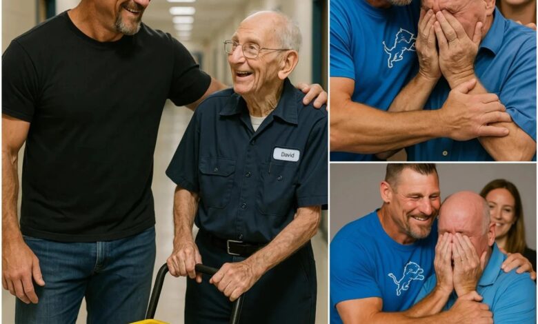 Son.HEARTWARMING SURPRISE SHOCKS A NATION : “DAN CAMPBELL FINDS HIS HIGH SCHOOL JANITOR STILL WORKING AT 85 — AND WHAT HE DID NEXT CHANGED EVERYTHING!” — Detroit Lions Coach Visits His Old School, Discovers Mr. David’s Lifelong Dedication, and Delivers a Gesture of Gratitude That Leaves Students, Staff, and the Entire Country in Tears and Awe.