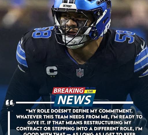 Detroit – January , 2026 — In an NFL where offensive tackles of elite caliber rarely give an inch, Penei Sewell did exactly that. Just one hour after learning the Detroit Lions were facing serious salary-cap constraints, the All-Pro right tackle agreed to restructure his contract — prioritizing team success over personal numbers in a move that speaks volumes about Detroit’s locker-room culture.