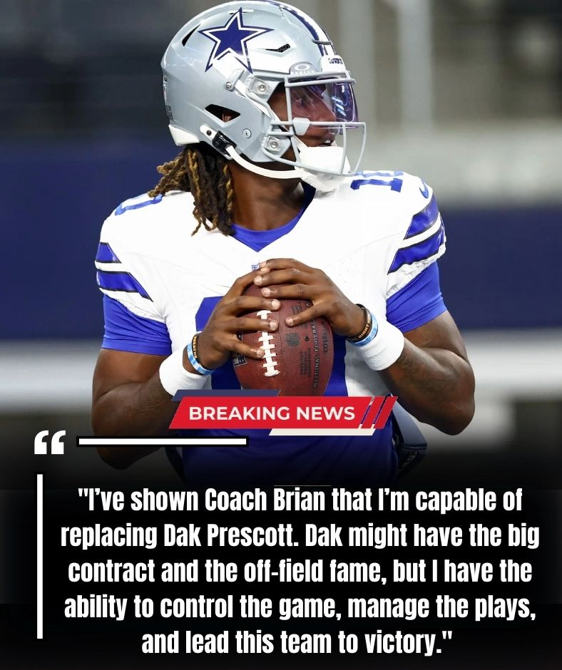 “I’ve shown Coach Brian that I’m capable of replacing Dak Prescott. Dak might have the big contract and the off-field fame, but I have the ability to control the game, manage the plays, and lead this team to victory. Those external factors don’t matter as much as my on-field skills. I believe I can do better because I have the talent and confidence to be the leader this team needs.”