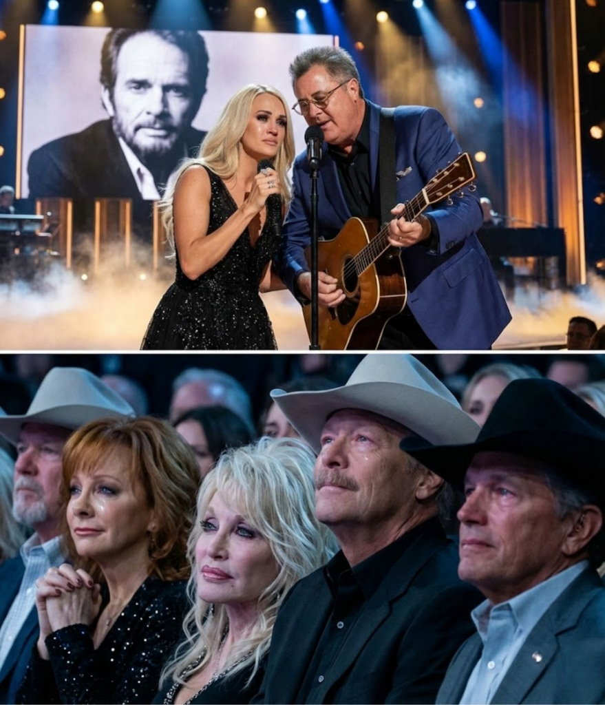 The song carried the weight of decades: working lives, quiet losses, stubborn hope, and the unspoken dignity that defined Merle Haggard’s legacy. It was country music stripped back to its bones — no spectacle, no disguise.