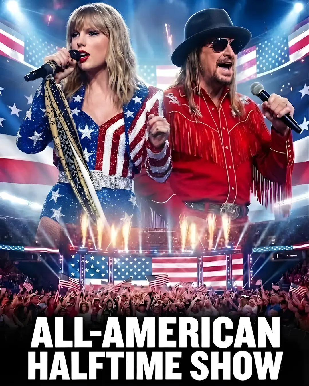 That single detail has ignited a wave of speculation, curiosity, and fierce debate across social media platforms, news feeds, and fan forums. For many viewers, the idea of a competing halftime broadcast is already bold. The possibility that it could feature global superstar Taylor Swift and rock veteran Kid Rock has turned curiosity into a cultural flashpoint.