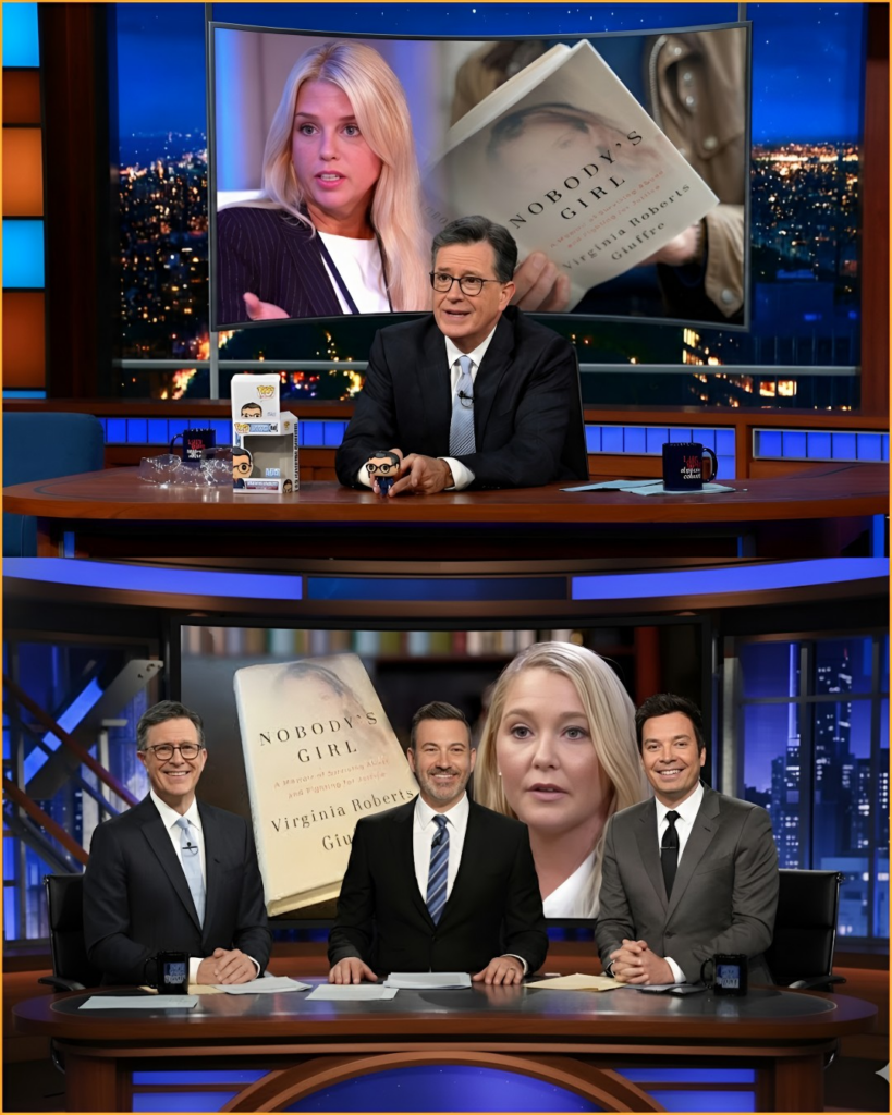 After more than three decades on the air, The Late Show crossed an invisible line. What unfolded was not satire, not entertainment, and not another carefully packaged celebrity interview. Stephen Colbert turned his stage into a public reckoning, joining forces with two unexpected allies to confront one of the most sensitive and controversial stories of the past decade: the Virginia Giuffre case — and the long-standing questions surrounding Pam Bondi’s role in it.