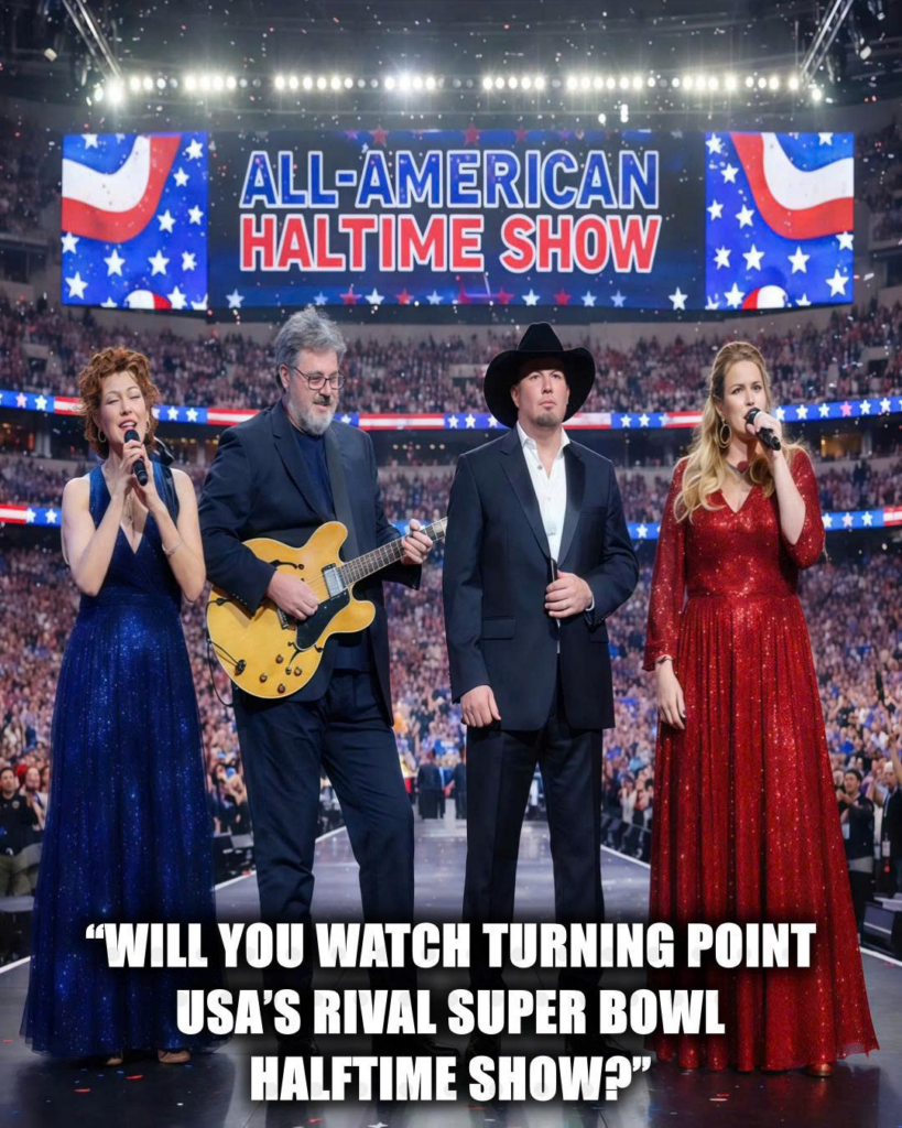 A rapidly spreading claim has once again pushed the Super Bowl halftime conversation into overdrive, with online posts asserting that a new twist has amassed hundreds of millions of views in just days. According to these reports, an event described as Erika Kirk’s “All-American Halftime Show” is allegedly being prepared to air live during the Super Bowl halftime window on a network other than NBC. The narrative has intensified further with claims that prominent country music figures—including Garth Brooks and Trisha Yearwood, as well as Vince Gill and Amy Grant—are slated to take part. The reaction has been swift, emotional, and deeply divided. Yet as the story races ahead on social media, a closer look shows that key elements remain unverified, and the gap between viral claims and confirmed information is substantial.
