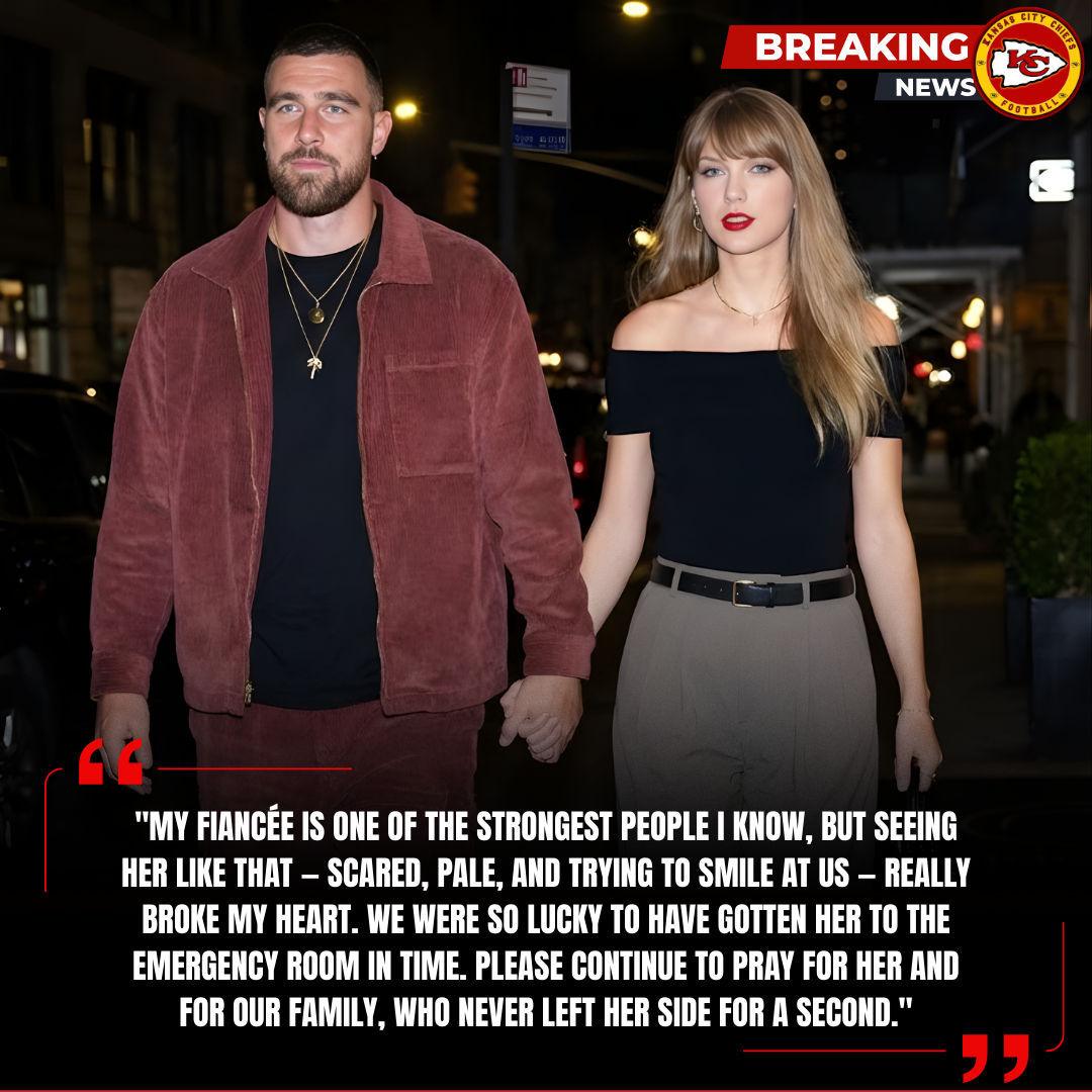 Emotional: Travis Kelce Shares Heartbreaking Update After Taylor Swift Was Rushed to the Hospital Following Sudden Medical EmergencyThe world is holding its breath tonight as news spreads that global superstar Taylor Swift was urgently rushed to the hospital after a sudden and alarming medical emergency — an incident that has left millions of fans shaken and her fiancé, NFL star Travis Kelce, overwhelmed with emotion.