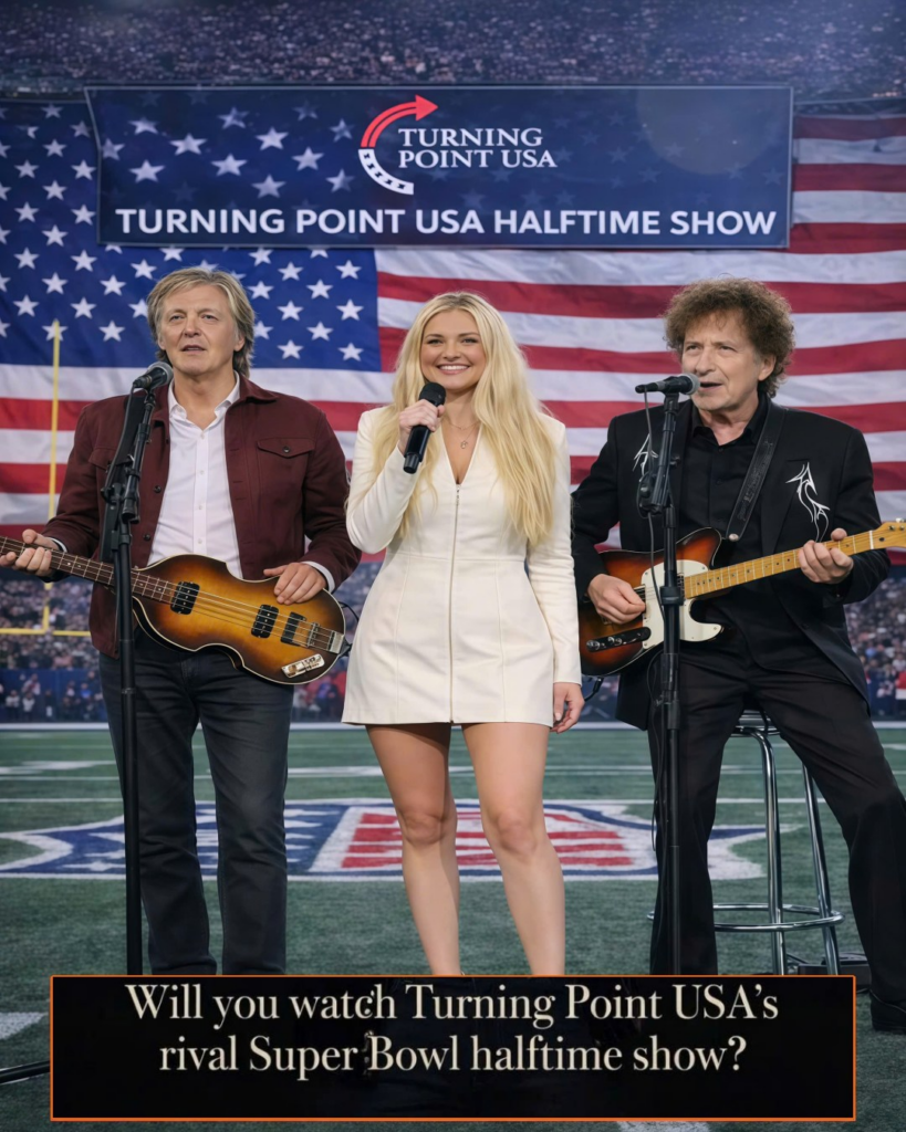 A single headline has detonated across sports, music, and media culture, igniting one of the most volatile Super Bowl halftime debates in recent memory. According to circulating reports, an “All-American Halftime Show” associated with Erika Kirk is expected to air live during the halftime window — but not on NBC, the league’s official broadcast partner. What has truly stunned audiences, however, is the claim that two living legends, Paul McCartney and Bob Dylan, are confirmed to be part of it.
