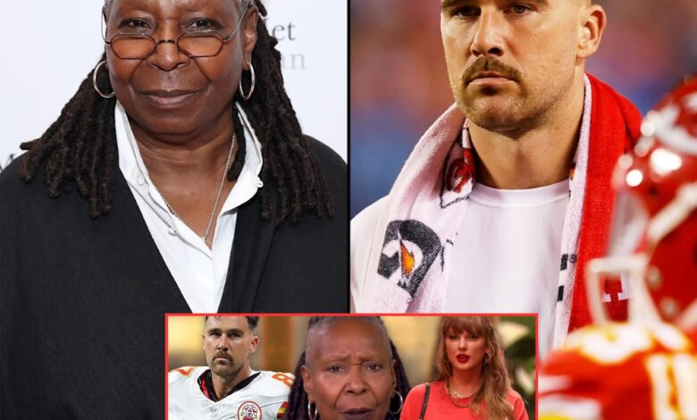 US.THE MOMENT THAT SHAKED LIVE TV — When Whoopi Goldberg nonchalantly said, “He’s just a football player,” the world laughed… Until Travis Kelce looked directly into the camera. What he said next turned a casual comment into a national conversation about respect, identity, and values.